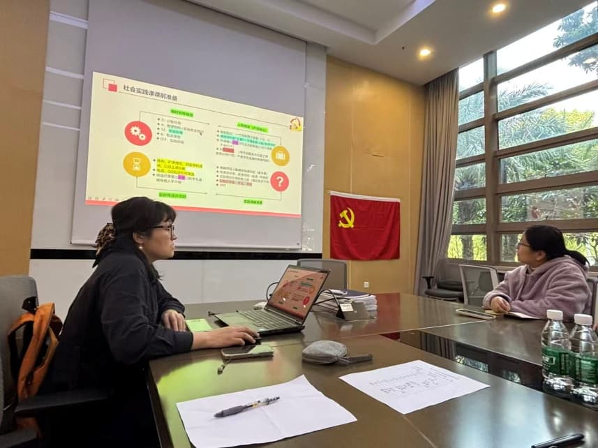 随后,王亚男与赖博轩两位老师作《社会实践课设计》专题报告,围绕课程定位、实践任务构建、评价体系设计等内容进行系统讲解。报告为探索助教招聘新模式提供了可借鉴的思路,也促进两支部在课程改革与实践教学方面的交流互通。