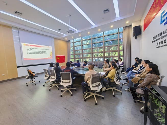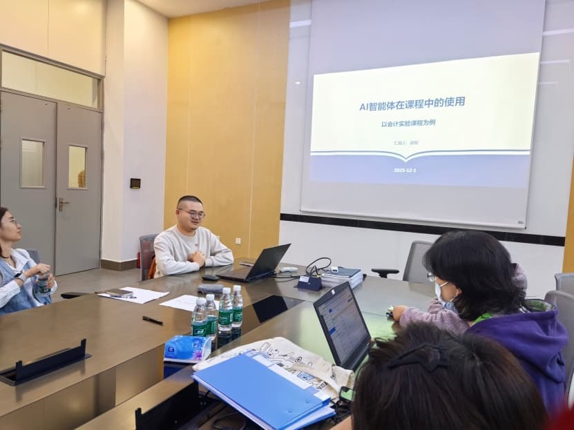 胡铭老师围绕人工智能前沿技术,作《AI智能体在课程中的使用》专题分享。报告介绍了AI智能体在课堂辅助教学、课后辅导、实践环节支持等方面的应用实例,并探讨了其在人才培养质量提升中的潜力。党员同志们就AI赋能教育开展交流,气氛热烈。