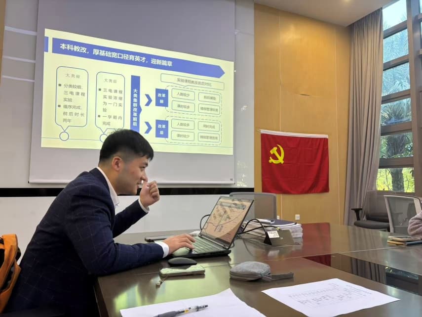 2025年12月1日下午,计算机与数据技术实验教学部党支部联合电气电子实验教学部党支部在实训楼 K128室开展主题党日共建活动。两支部党员积极参与,通过专题学习、经验分享与观影交流等形式,共同推进党建与业务深度融合,切实提升党支部凝聚力和战斗力。
