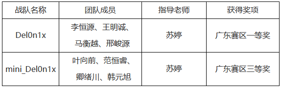 深圳校区实验与创新实践教育中心(分析测试中心)苏婷老师指导的2支队伍在广东赛区半决赛中分别获得一等奖和三等奖,其中Del0n1x战队成功晋级全国总决赛。